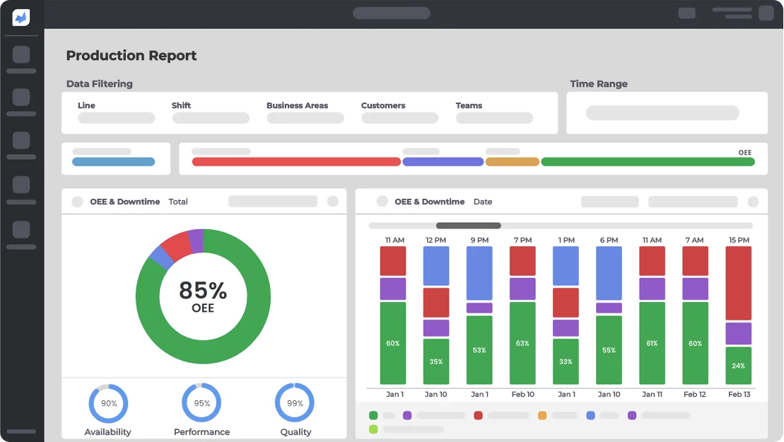 Monitor your equipment’s efficiency in real time and pinpoint the causes of downtime and waste.